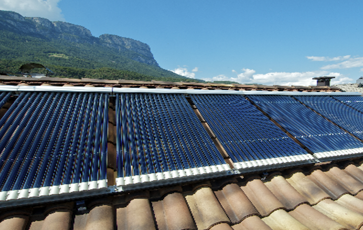 Les panneaux solaires thermiques sont installés en toiture, et permettent de récupérer l’énergie solaire (gratuite). L’eau circulant dans les panneaux va venir préchauffer l’eau chaude sanitaire voire l’eau pour le chauffage, en stockant l’énergie dans un ballon solaire.